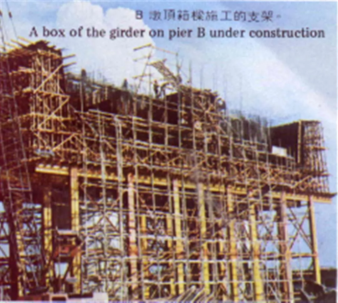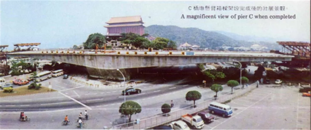 Men's creativity is manifested in many ways. When a road is cut off by a river, they build a bridge--which may be a work of art. Some say that architects are dreamers, who turn their dreams into reality. The Yuan Shan (prestressed concrete cantilever) Bridge on the north south freeway in Taipei was a dream and is now becoming a reality. It also is a work of art. It is one of the largest cantilever bridges in the world. The construction method used "travel wagons" moving by segments from both sides of the existing piers to pour concrete with reinforcing steel. The process continued, segment by segment, the whole length of the span until the "wagons" met midway at the hinged connection point. The north and south approaches of the bridge are supported on prestressed concrete girders and cast-in-place concrete piles with spans from 30 to 40 meters. The 6-lane main bridge is prestressed concrete cantilever construction at the center, with a total length of 671 meters. The maximum width is 34.6 meters. The north and south approaches are 158.8 meters and 525.5 meters long, respectively.