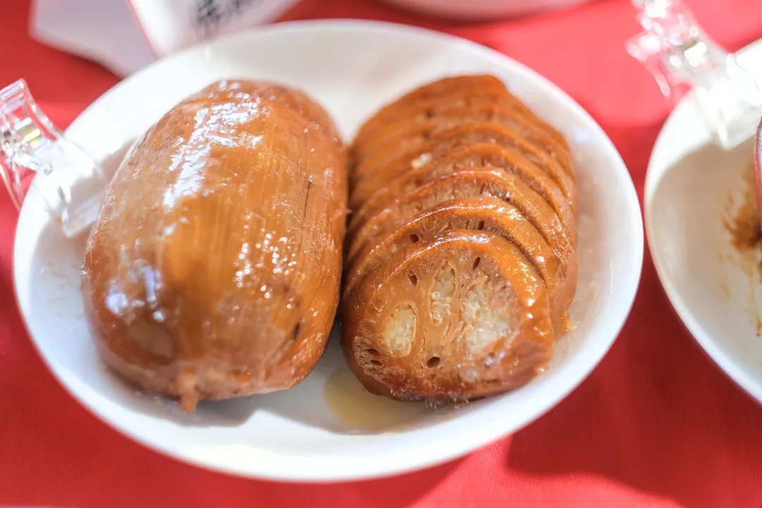 Candied lotus root is a Hangzhou specialty stuffed with glutinous rice and simmered in a sugar syrup for at least eight hours.