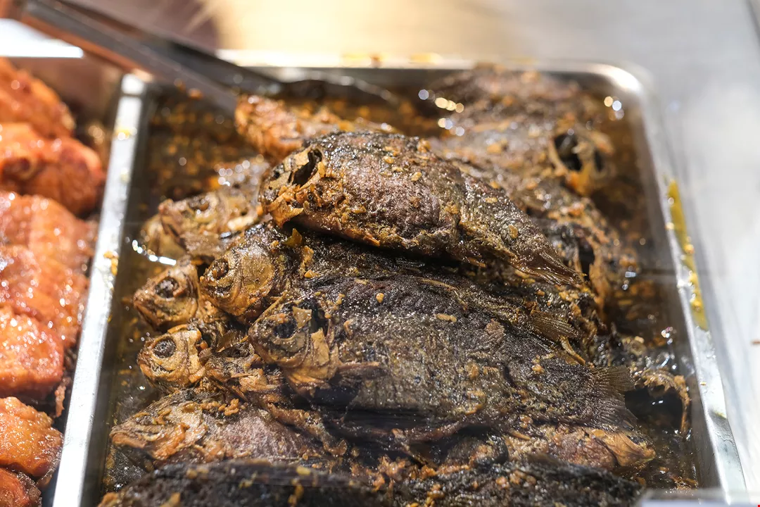 Braised crucian carp with scallions is cooked slowly in a special sauce.