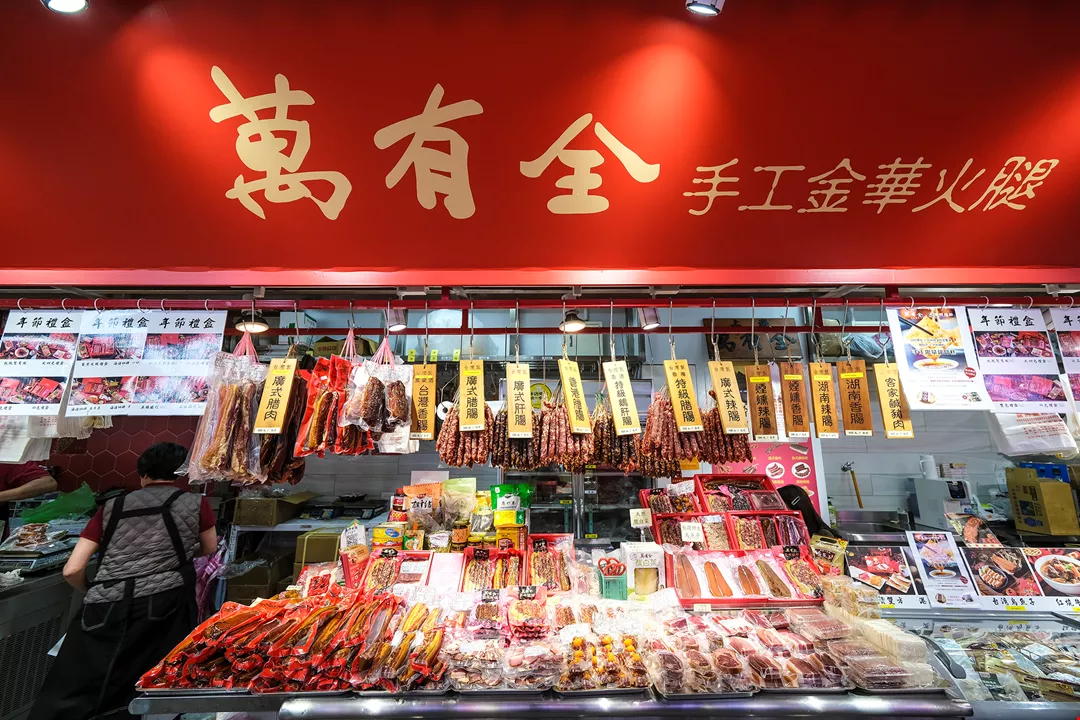 The Wanyouquan stall ages its hams for a full year to develop their flavor. The stall offers a wide variety of New Year’s essentials, including ham, dried eel, and dried bamboo shoots.