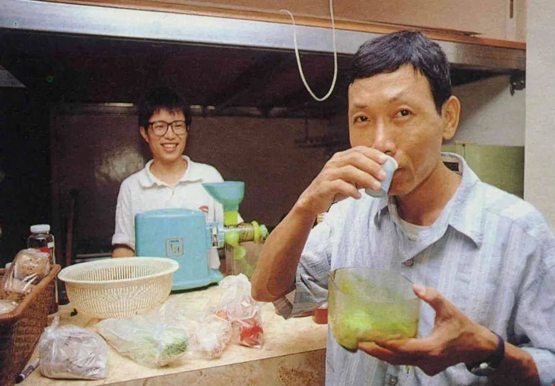 Four years ago, stricken by liver cancer, 53-year-old Wang Su-yueh had surgery to remove one lobe of her liver. After her operation, she heard a report on Lai Chiu-nan's promotion of the living foods diet. Wang, already a vegetarian, decided to take her vegetarianism one step further and try this diet.