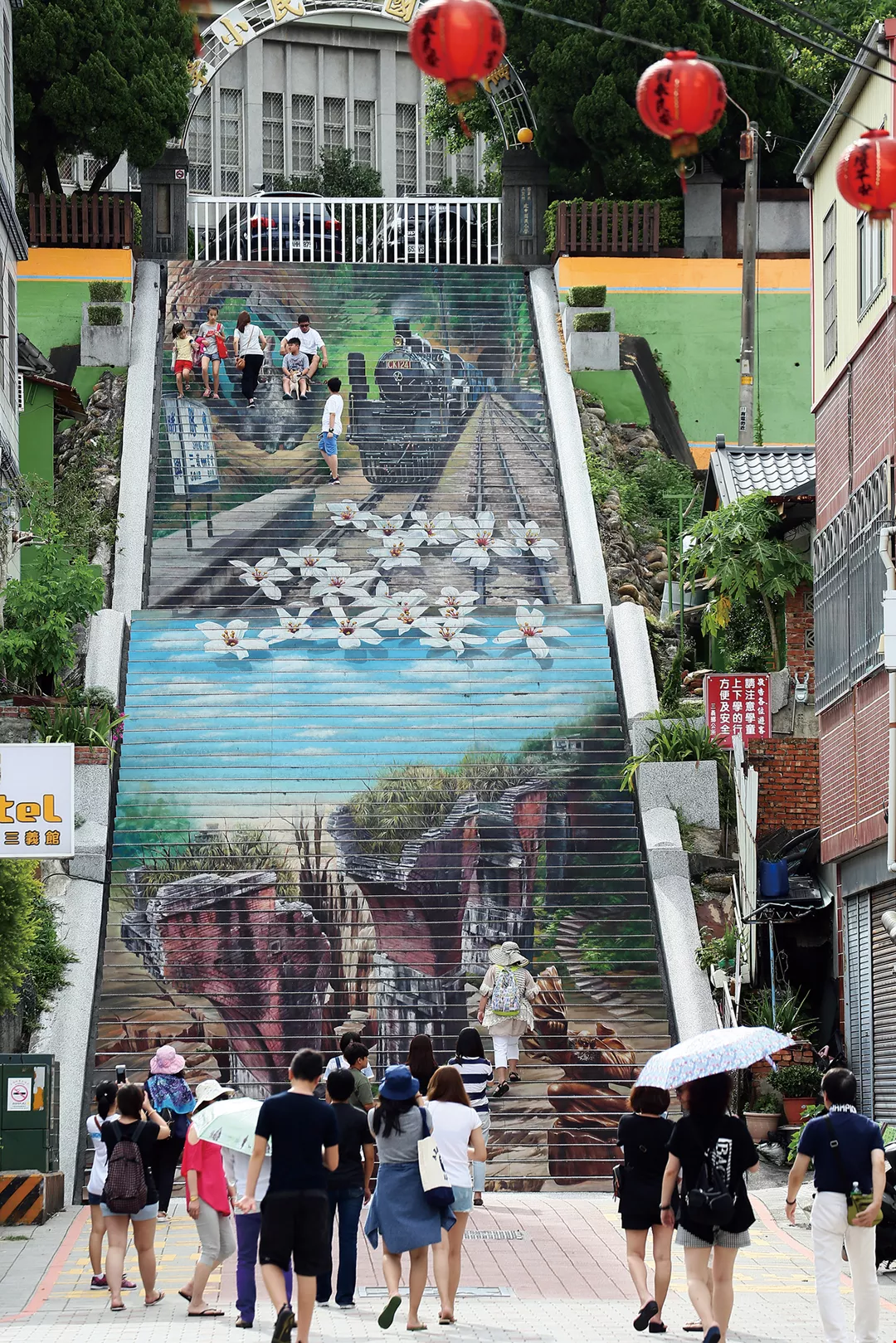 An artist has converted the long staircase leading up to Jianzhong Elementary School into a gallery of images that illustrate the best of Sanyi. It’s beautiful no matter which way you look at it.