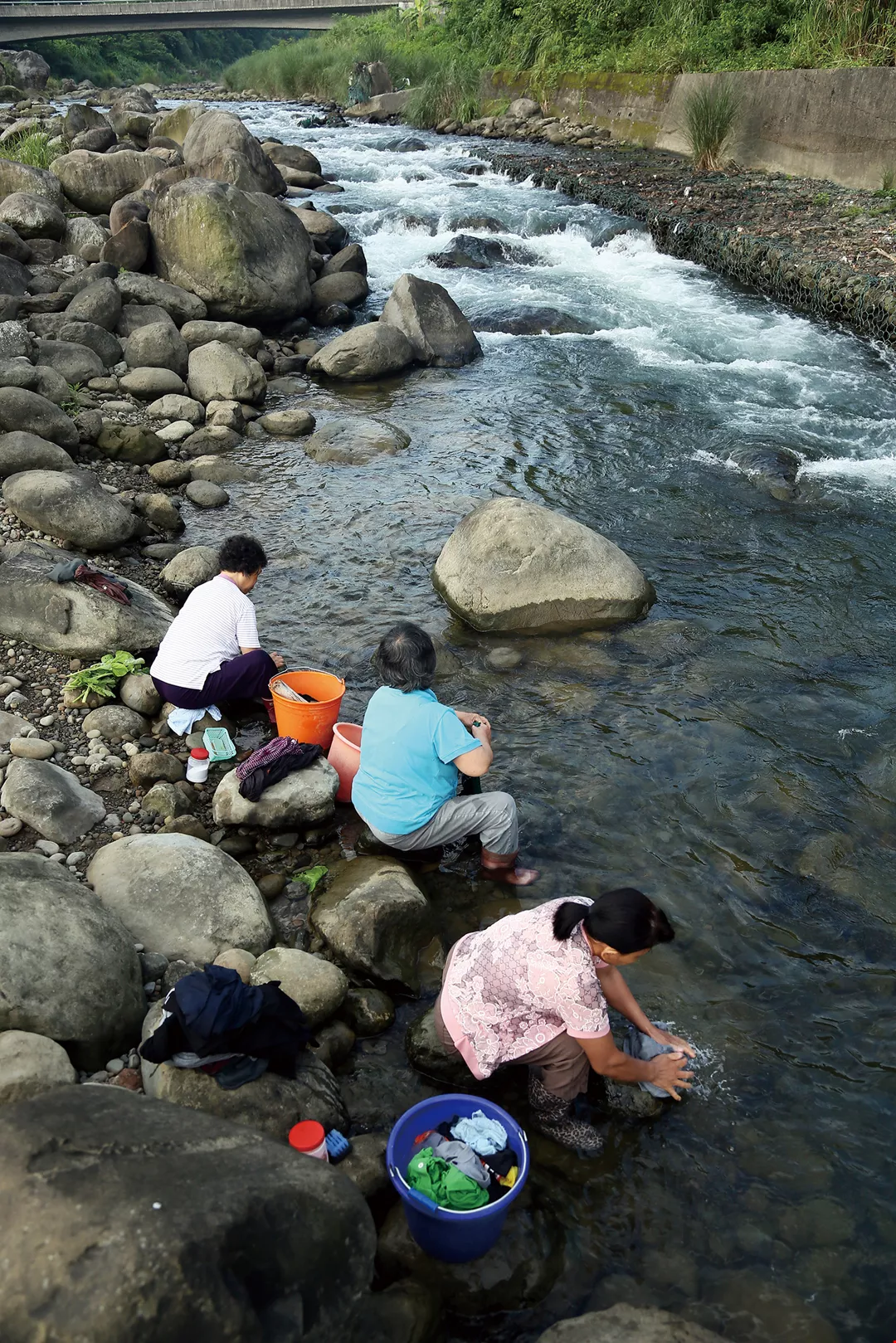 The rapid current of pristine river water forms a natural washing machine. Every day in Nanzhuang you can see women out washing clothes while chatting about their daily lives.