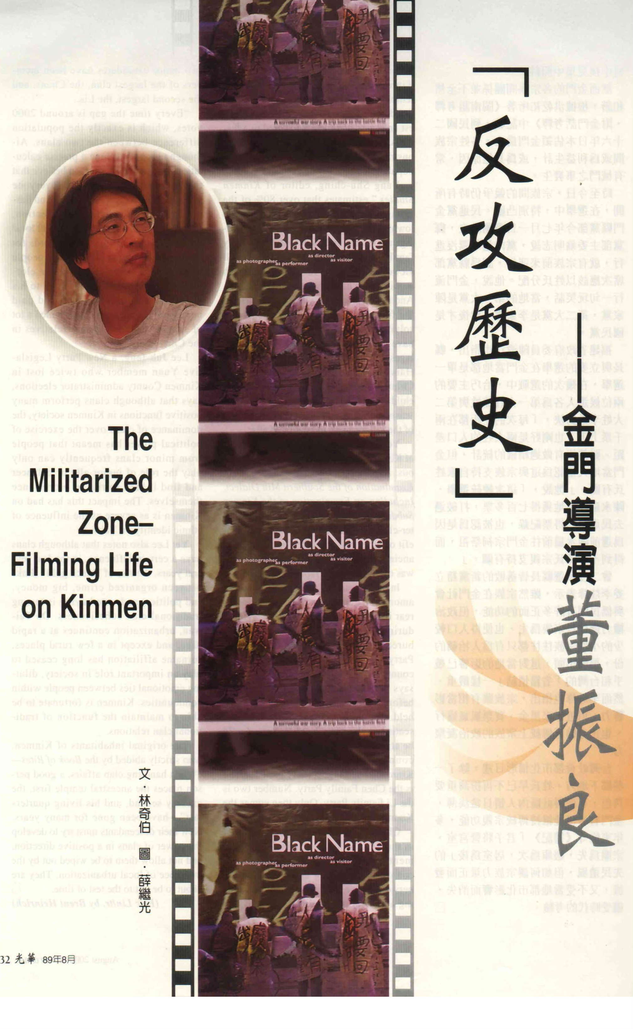 Tough conditions, however, have just brought out the best in Dong. In 1993 he completed The Bombardment, in which he interviewed old-timers who told the story of the shelling of Kinmen by mainland China in 1958 in the Battle of the Taiwan Strait. In 1995 he filmed Every Odd Numbered Day, which tells the suffering of the local populace as mainland China shelled Kinmen every other day for more than 20 years after the Battle of the Taiwan Strait. In 1995 he also completed Straight Ahead with a Rifle, which details the impact of military firing ranges upon the safety of local communities. In 1997, The Lions of Good Fortune focused on the lion statues that people in Kinmen use to ward off evil spirits and misfortune. In that same year he also filmed Homesick 2000 Meters, which describes the dilemma of women from the city of Xiamen who marry men in Kinmen. Although Kinmen is separated from Xiamen by just a few nautical miles, the standoff between Taiwan and the PRC means that the only legal way to get from Xiamen to Kinmen is to fly first to Hong Kong and then Taipei before finally heading from there to Kinmen. The trip takes two days even though residents can gaze across the water to the city on the opposite shore. Last year Dong completed Black Name, which tells the story of Chen Chen-chien and the blacklist maintained by immigration authorities in Kinmen during the martial law period. Chen was one of those put on the blacklist and prevented from returning to Kinmen. He eventually forged false documents and sneaked back in, but he was soon arrested and thrown in prison.