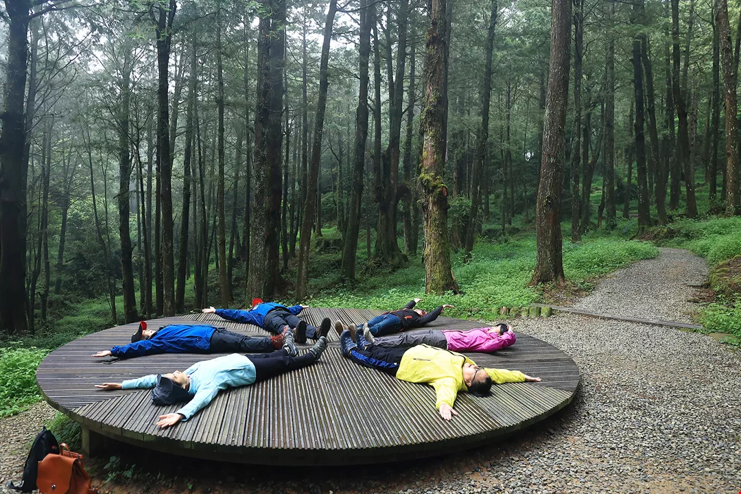 In recent years, the Forestry and Nature Conservation Agency (FANCA) has launched a certification program for forest therapists. A total of 45 practitioners have been accredited since 2023. Of Taiwan’s 18 national forest recreation areas, eight—Taipingshan, Dongyanshan, Baxianshan, Aowanda, Alishan, Shuangliu, Zhiben, and Fuyuan—have been selected as demonstration sites for forest therapy based on their biodiversity, environmental conditions, footpaths and other facilities, accessibility, convenient accommodation, and cultural diversity.