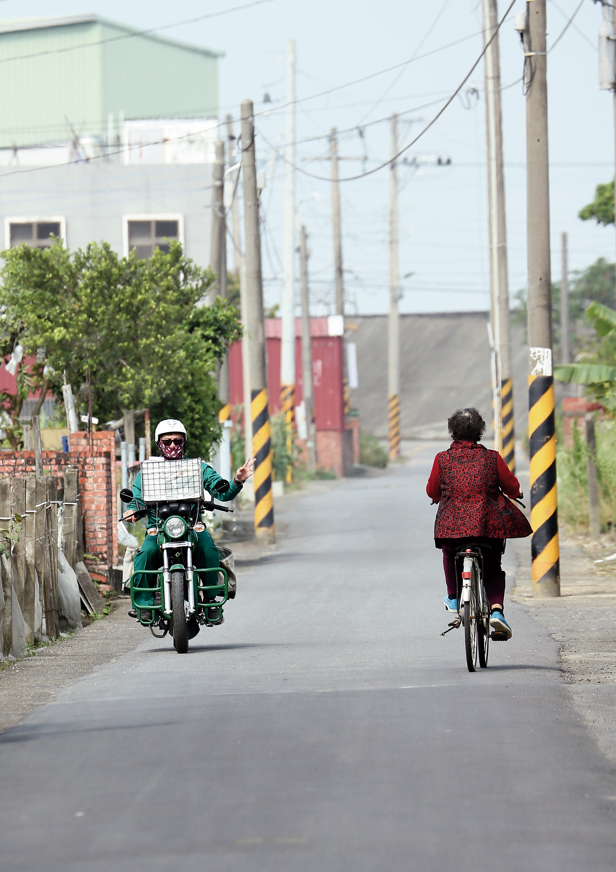 Li Xiang, who has become part of the fabric of local life, waves to an old lady on a bicycle.