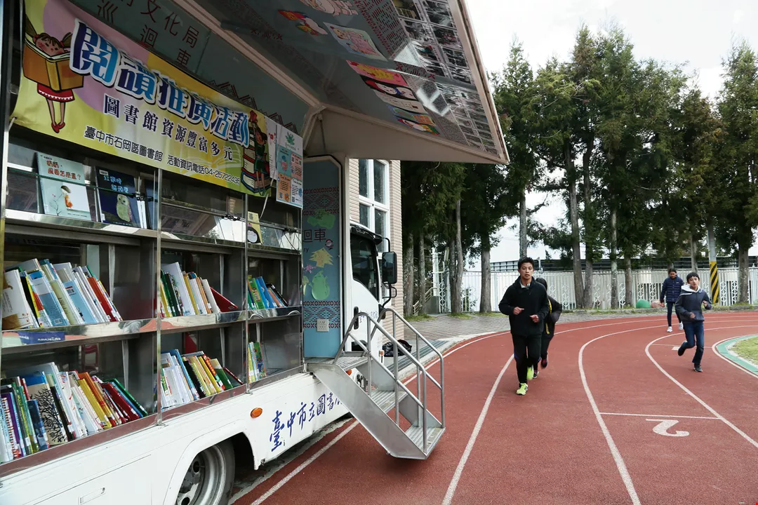 Once a month, the mobile library of the Shigang branch of the Taichung City Library takes a trip along the Central Cross-Island Highway to reach Lishan Junior High and Elementary School and Pingdeng Elementary School.