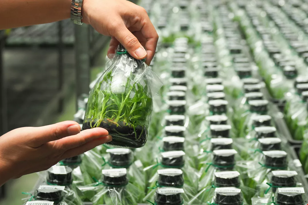 I Hsin Orchids specializes in orchid breeding and mericloning. This photo shows plantlets in growing media.