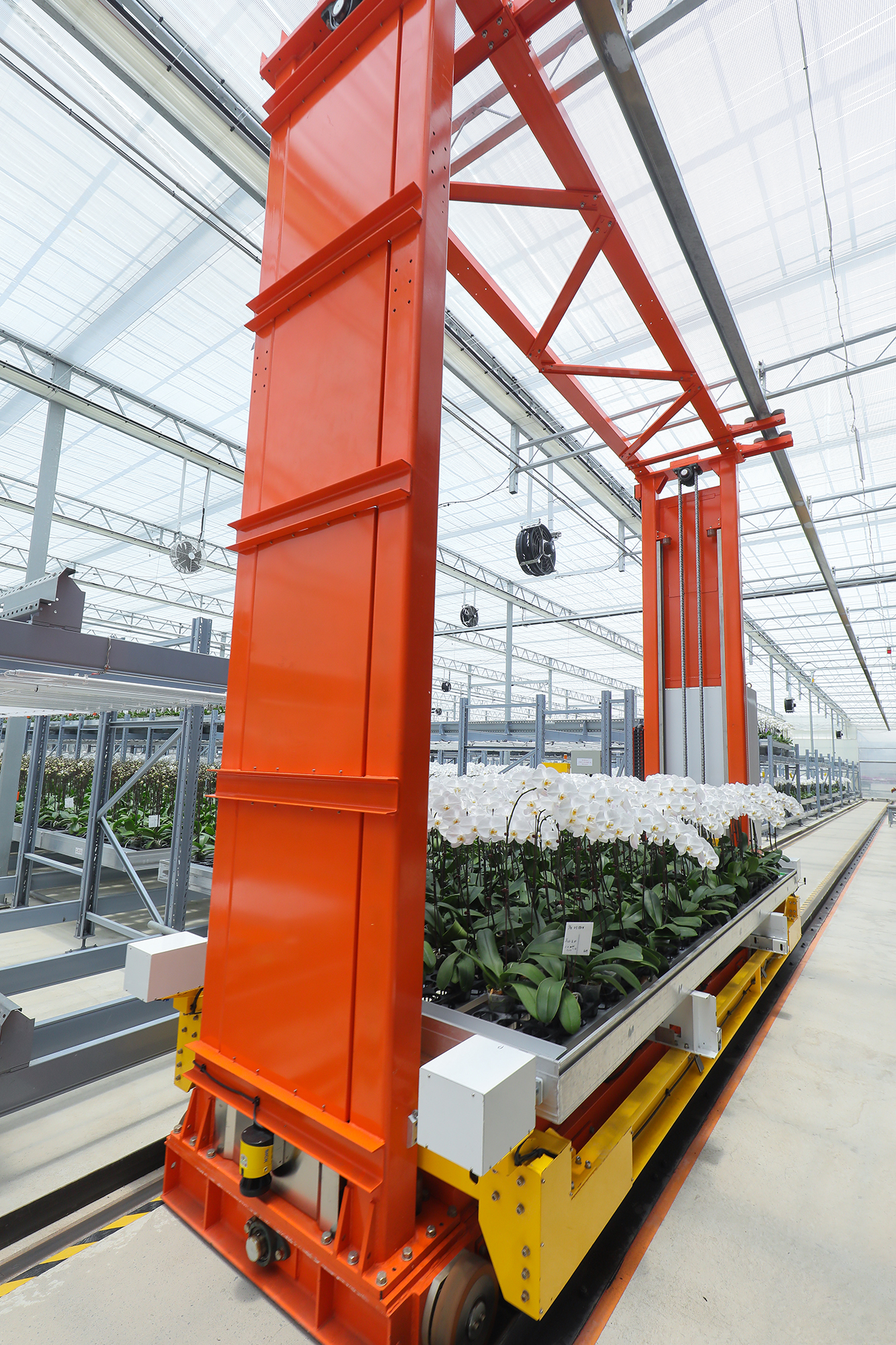Symon Agricultural Biotech is comprehensively updating its equipment. It is the first orchid grower in Taiwan to experiment with tiered growing racks served by an automated materials handling system, and is also trialing data capture for smart agriculture.