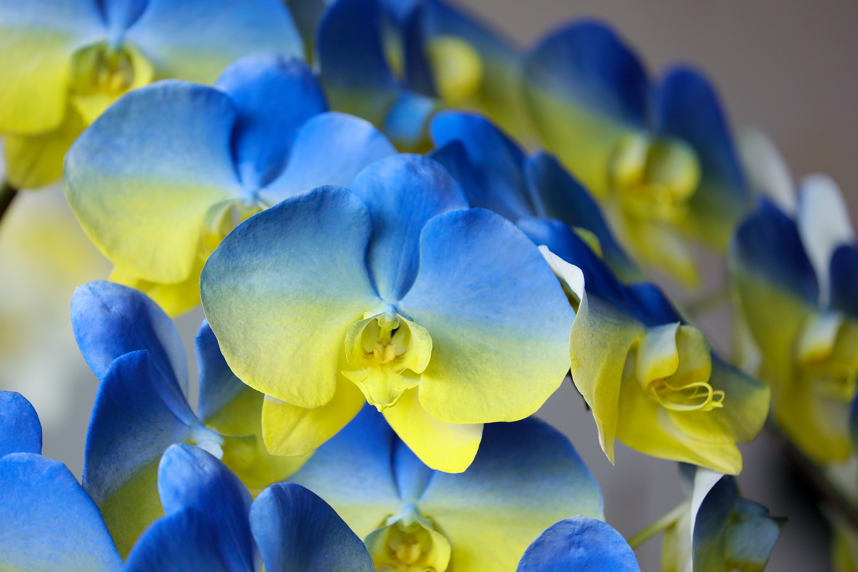 For its part, Symon Agricultural Biotech is blazing a trail in the development of “colorful orchids.” To show solidarity with Ukraine, the company has brought out white moth orchids that are nanoprinted in blue and yellow—the colors of the Ukrainian flag—which have generated a big response. The coloring techniques that David Huang began to develop several years ago not only do not shorten the life of the blooms, but can actually make them last longer. Huang gives orchids different colors by means of inkjet nanoprinting and absorption dyeing. When a plant absorbs dyes through its vascular bundles, its petals will be veined with beautiful colors. Nanoprinting, on the other hand, depends on color mixing and printing skills, the most prominent example being the “national flag” orchids.