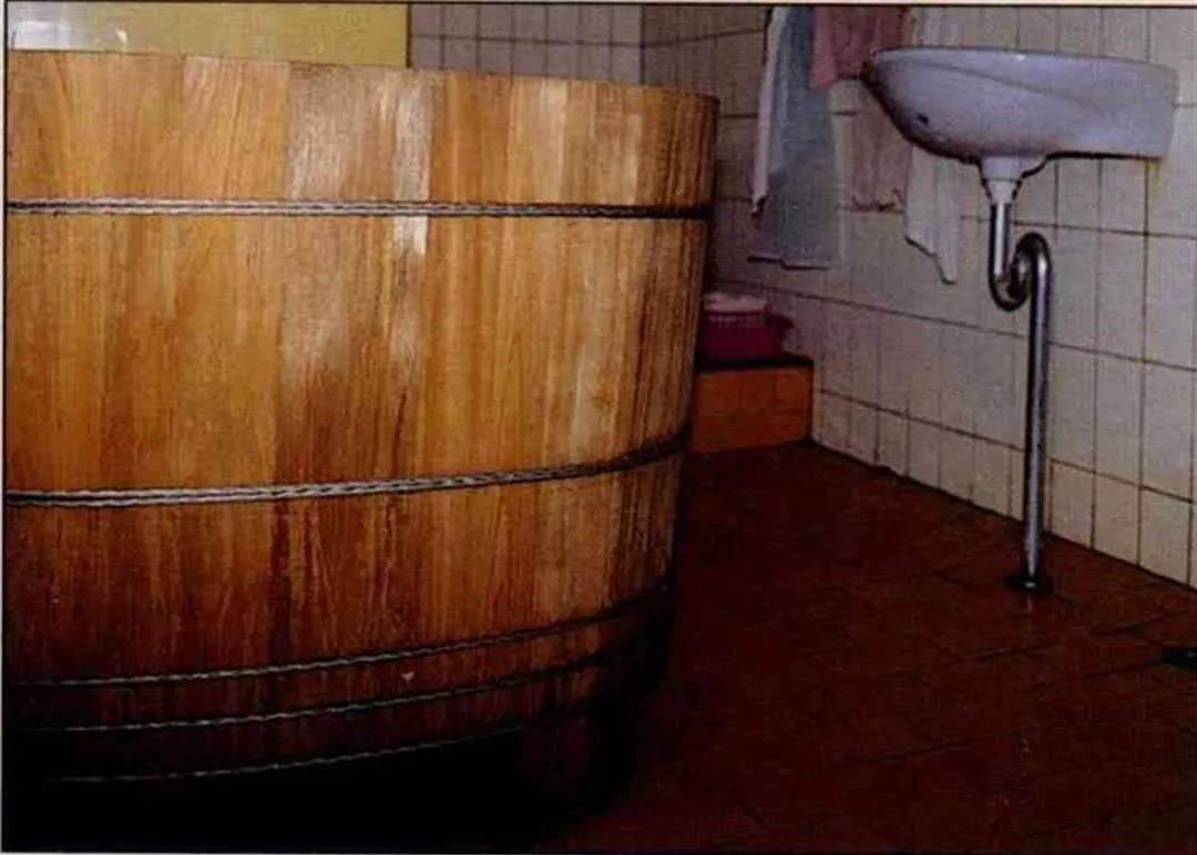 The wooden bathtub for the Yus'new house is ready and waiting.