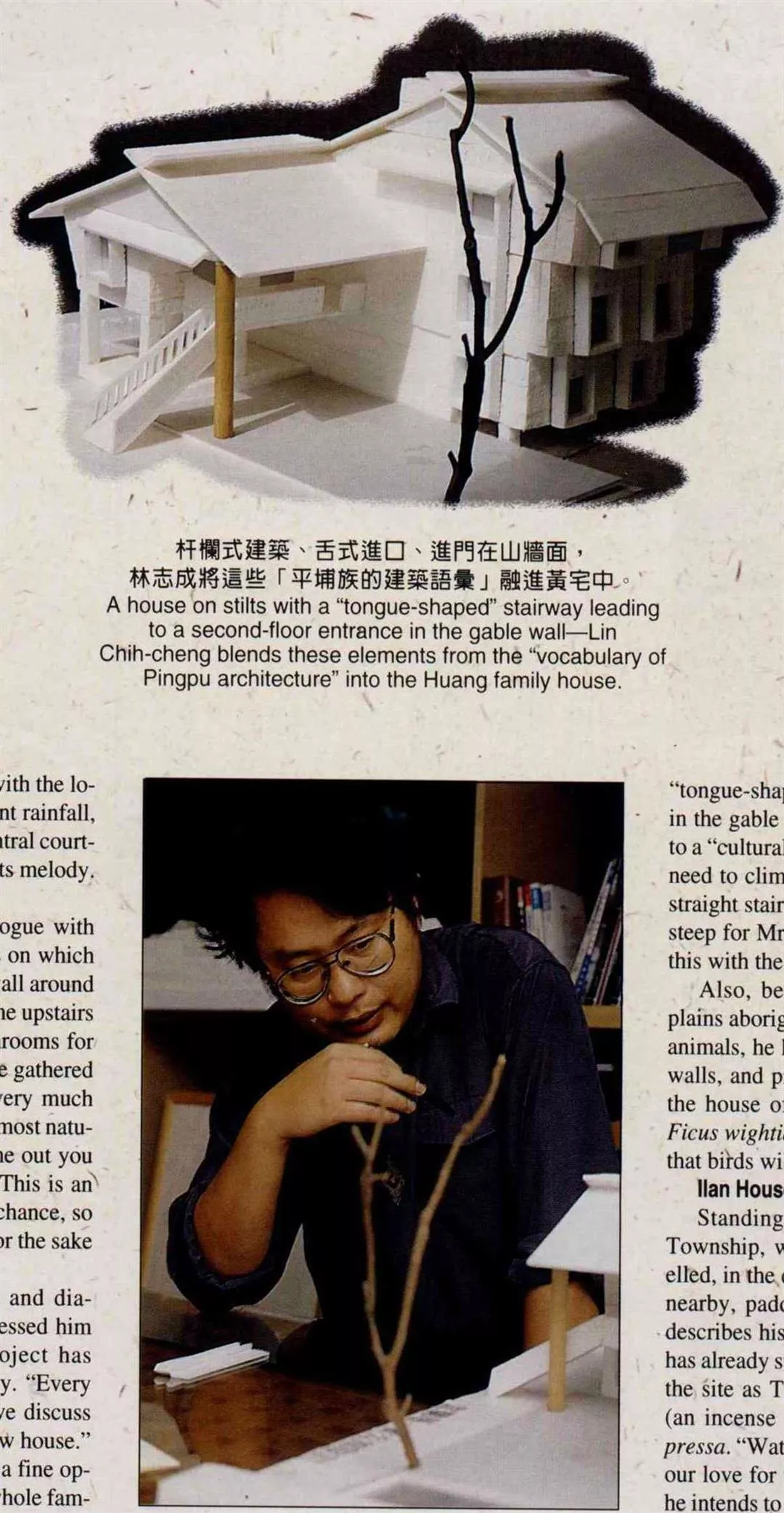 A house on stilts with a "tongue-shaped" stairway leading to a second-floor entrance in the gable wall-Lin Chih-cheng blends these elements from the "vocabulary of Pingpu architecture" into the Huang family house.