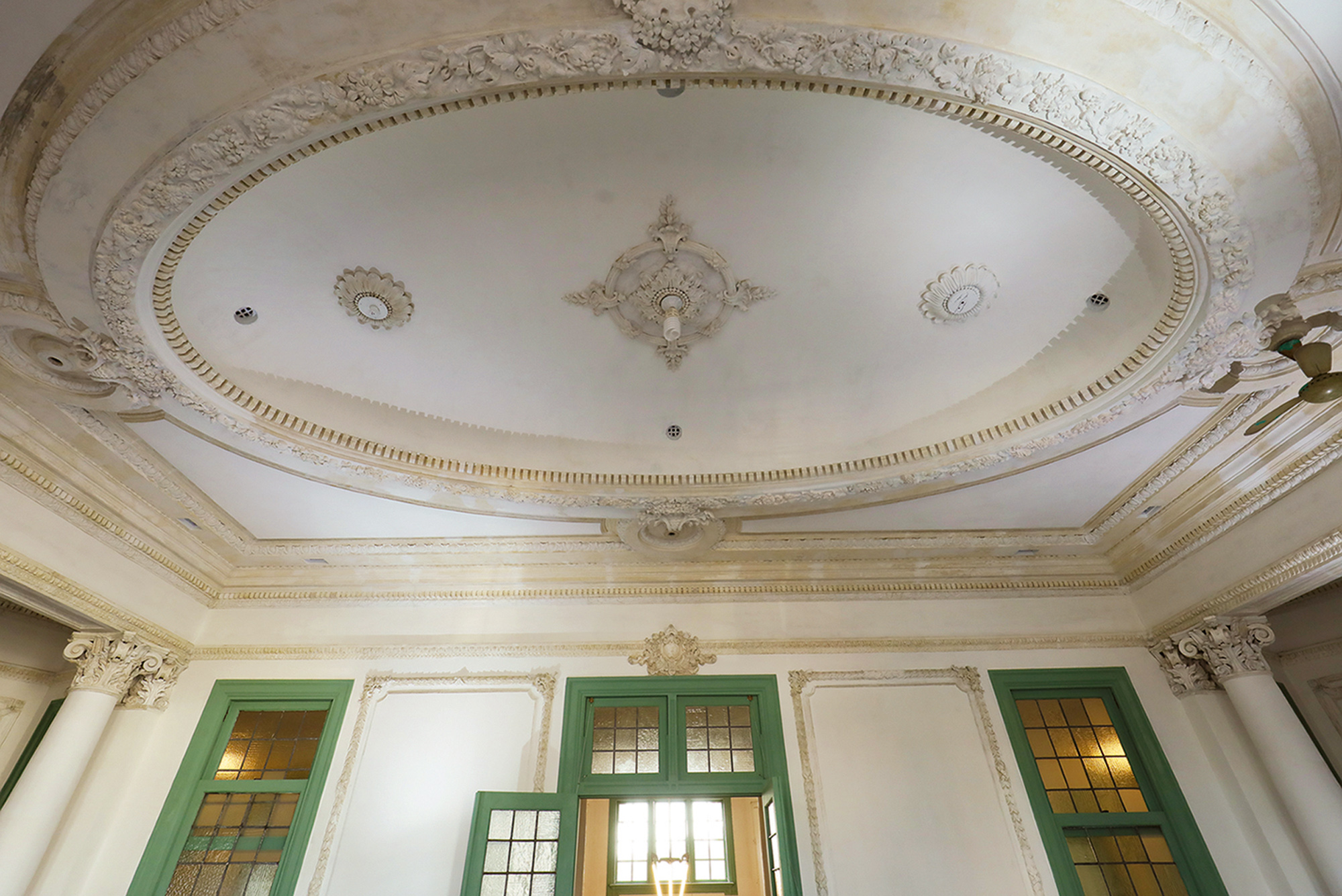 The conference room on the second floor of the Taiwan Railways Administration building features an ornate oval plaster ceiling that bears witness to the colonial government’s attention to detail and the importance it placed on making a stately impression.