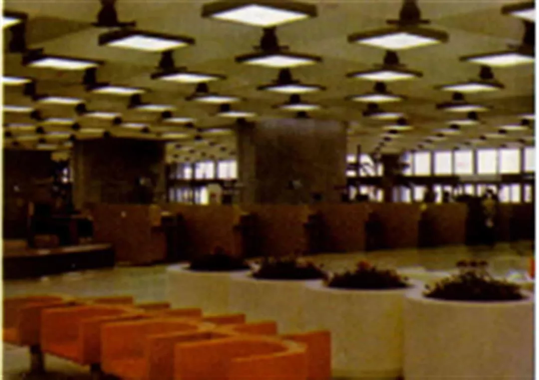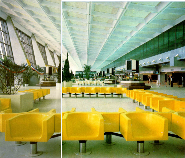 The five-story passenger terminal building and below, the official opening of the Airport.