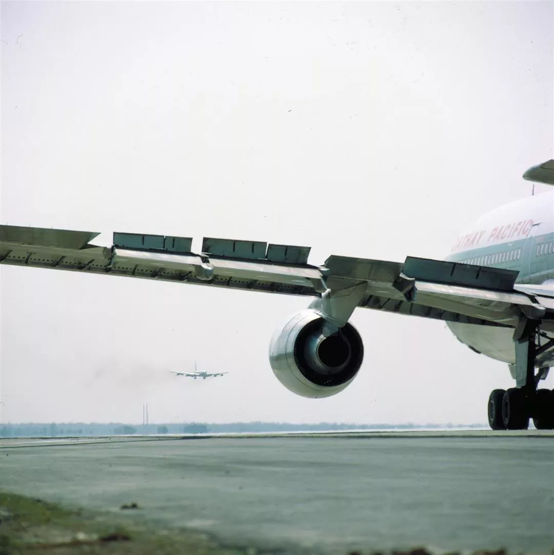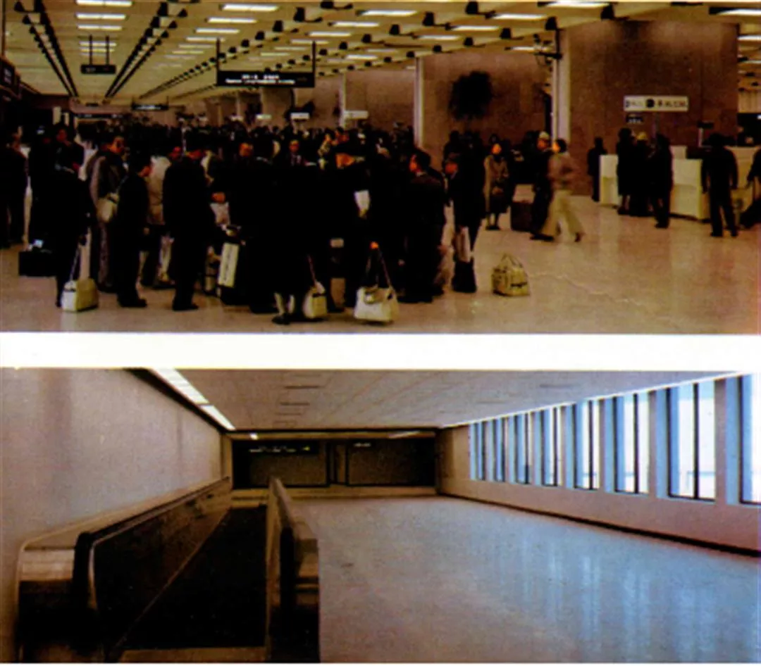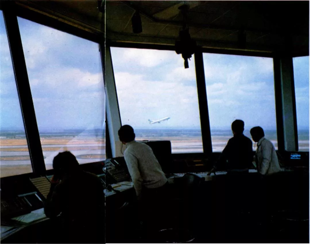 Top: takeoff and landing by international airlines, and the control tower building (bottom).