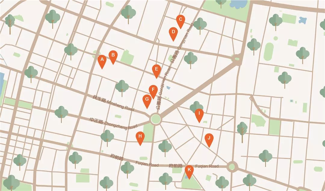 County government: The county government offices were located next to the county Chenghuang Temple. The remains can be found at the sports field of Chenggong Elementary School in West Central District.