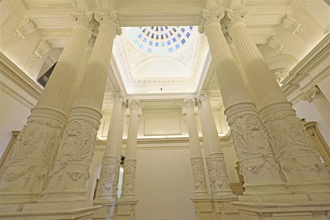 The atrium of the former Tainan District Court building (now the Tainan Judicial Museum) displays a rich Western architectural vocabulary, with such features as an openwork caisson cupola, Ionic pillars, and semicircular pilasters.