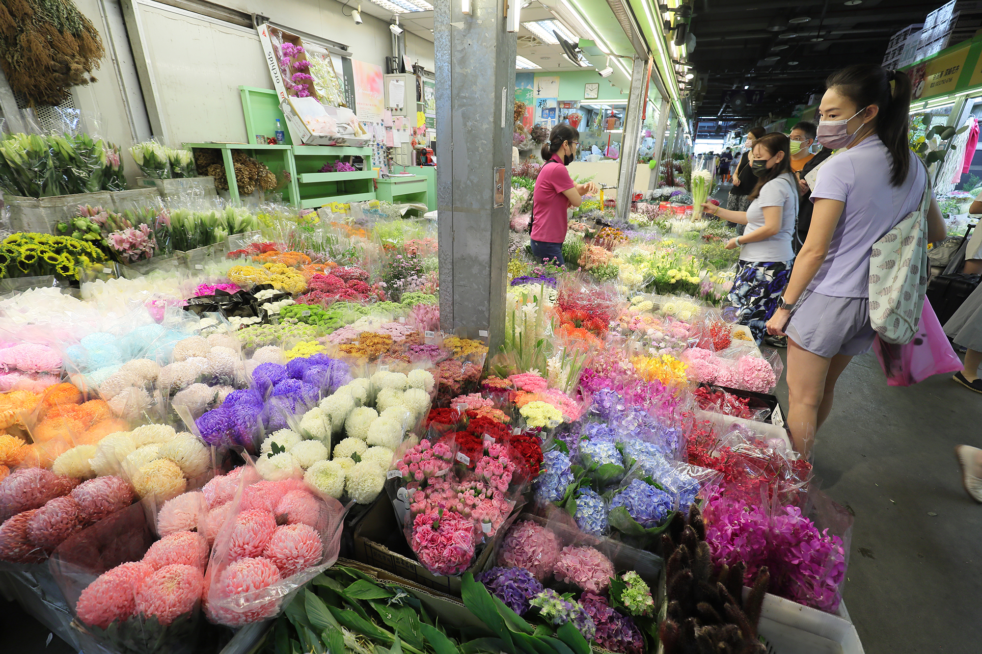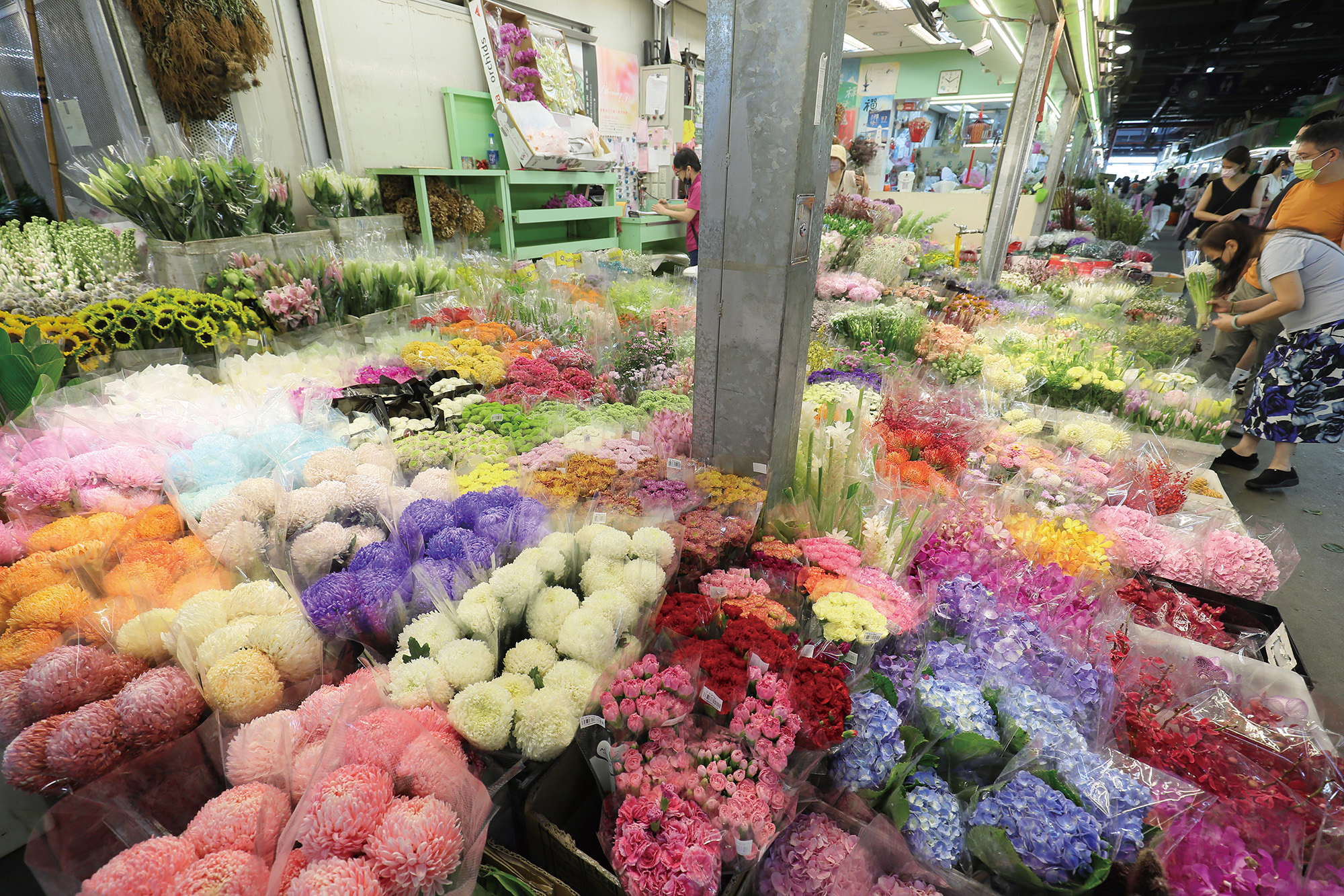 Describing how the market has changed over time, Huang observes: “Traditionally the main flowers were the likes of chrysanthemums, roses, and gladiolas, and the main colors were red, white, yellow, and purple. But over the past decade or so, many new flowers have come to the fore, such as lisianthus, Oncidium orchids, zinnia, and African daisies. The offering has become much more diverse.”