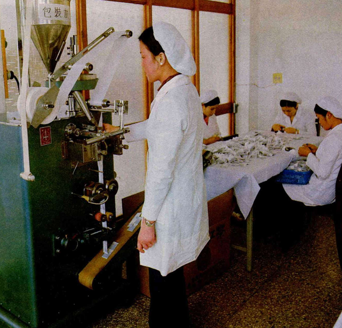 Left: Experts are invited to make an assessment of all types of tea. Below: Manufacturing tea bags.