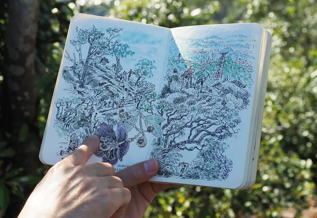 Shen’s successful professional career—from a vocational high school in Changhua to a technical university in Taipei, and from hand-drawn illustrations to digital art—has brought him acclaim and influence. But it also obfuscated his purposes at one point. Consumed by anxiety, he went into the mountains to draw and paint. Thanks to the healing power of nature, he was able to regain his composure and discover the secrets hidden in the woods. Drawing on several years of valuable experience, he has recently published a book entitled Lessons from the Mountains. Collaborating with people who are committed to environmental protection, Shen has devoted himself to the island he calls home.