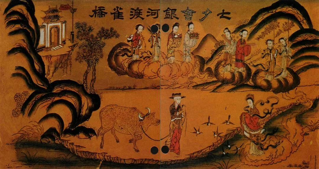 After becoming an immortal, Matsu was later made a goddess. Every day she roamed the seas, saving people in distress. She flouted the rules of heaven, continually roaming about among mortals and helping impecunious scholars and peasants to find themselves marriage partners. Then there is the touching story of the female immortal who fell in love with Dong Yongshang and married him in spite of his totally destitute condition. The queen of heaven refused to allow a marriage with a mortal, though, and forced the two to live on opposite sides of the Milky Way, able to meet but once per year. Although they were later allowed to return to life on earth, the terms of their reunion were harsh. These two soul mates fell in love in seven successive reincarnations, but were prevented each time from living together to old age. This story is a good illustration of the Chinese tendency to worry about when one's current run of good fortune will come to an end.