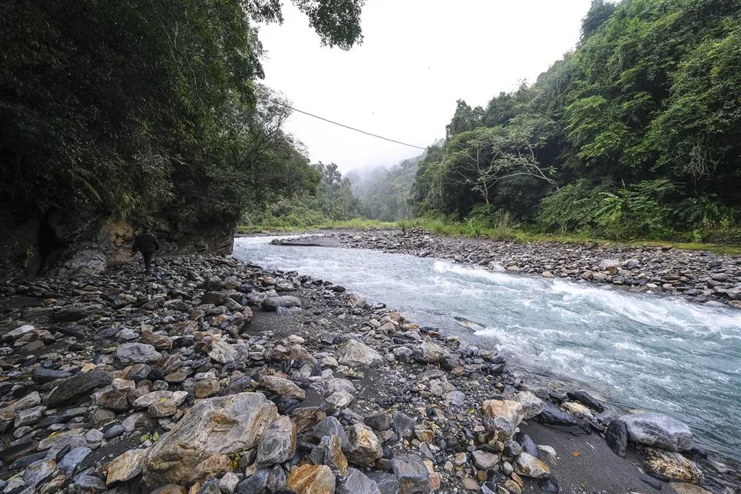From the Yingshi branch of Siji Elementary School, it takes only about 15 minutes on foot to reach Pengpeng Hot Springs. These can be considered “entry-level” wild hot springs that even novices can try, with a large area of hot spring outflows. One simply has to choose the right time of year to visit, avoiding the weeks following heavy rains to allow the main river to recede somewhat. The small tributaries and groundwater beside the main river are heated by geothermal energy, and every small pool on either side of the river valley has the potential for hot springs bathing. Tencen notes that simply by piling up stones from the riverbed one can craft one’s own personal hot spring pool.