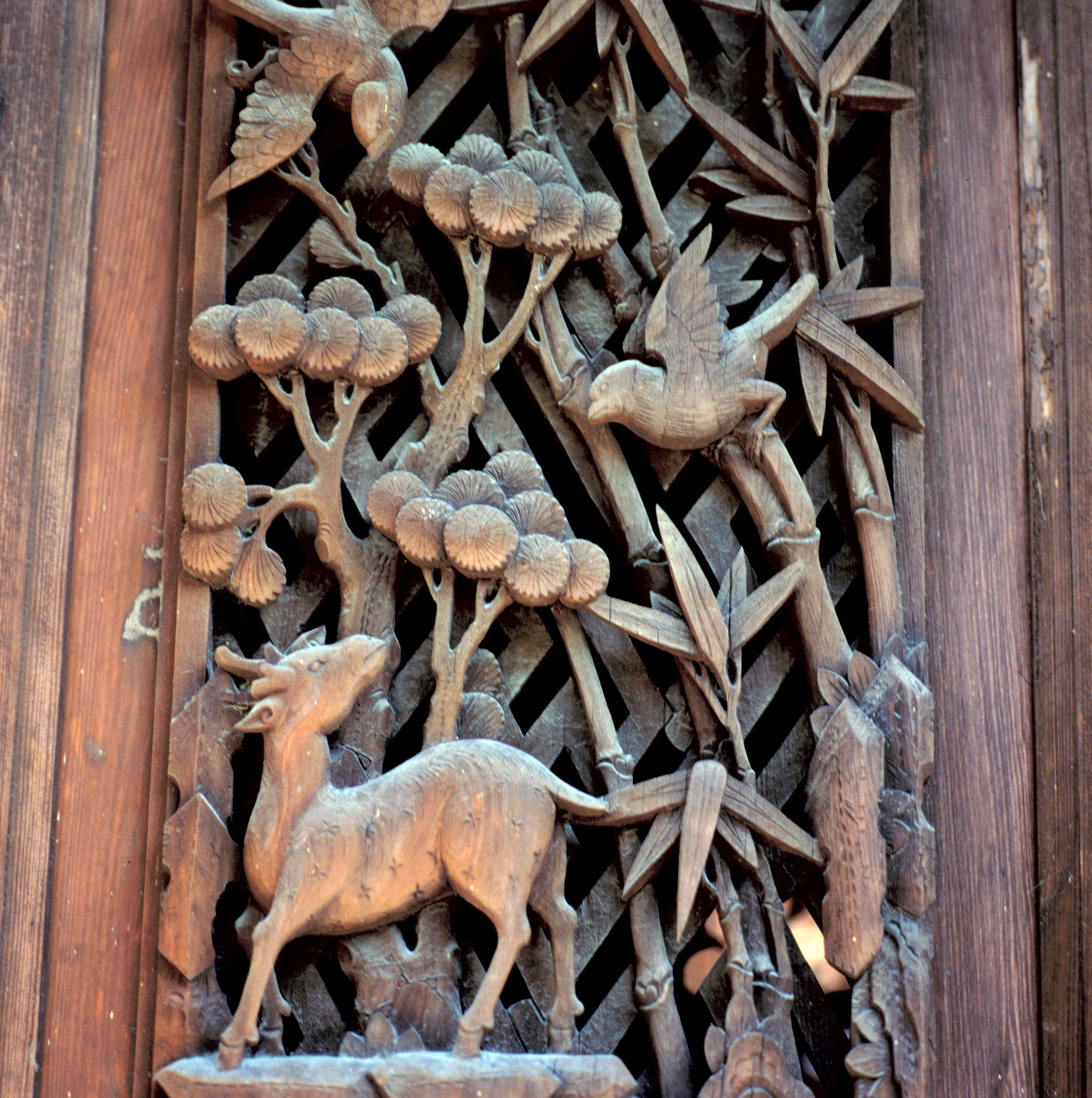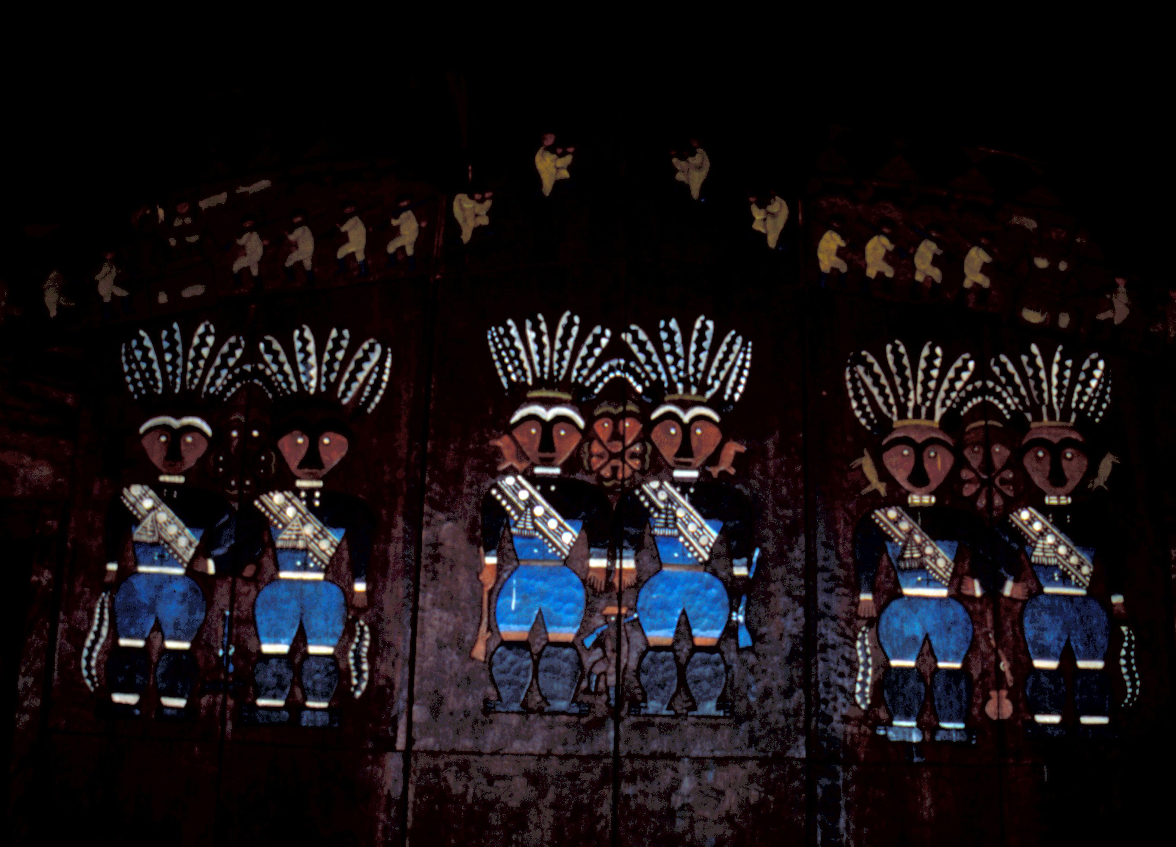 Carvings in the home of the chief of the P'aiwan tribe at the Formosa Aboriginal Culture Village.