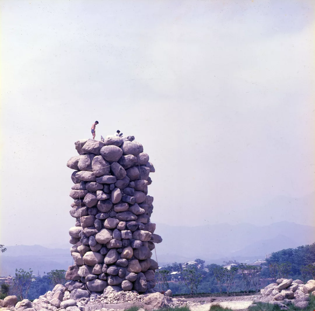 The Lin Yuan Stone Carving Park in Puli is currently under construction. This stone tower is made of the collected works of Lin Yuan.