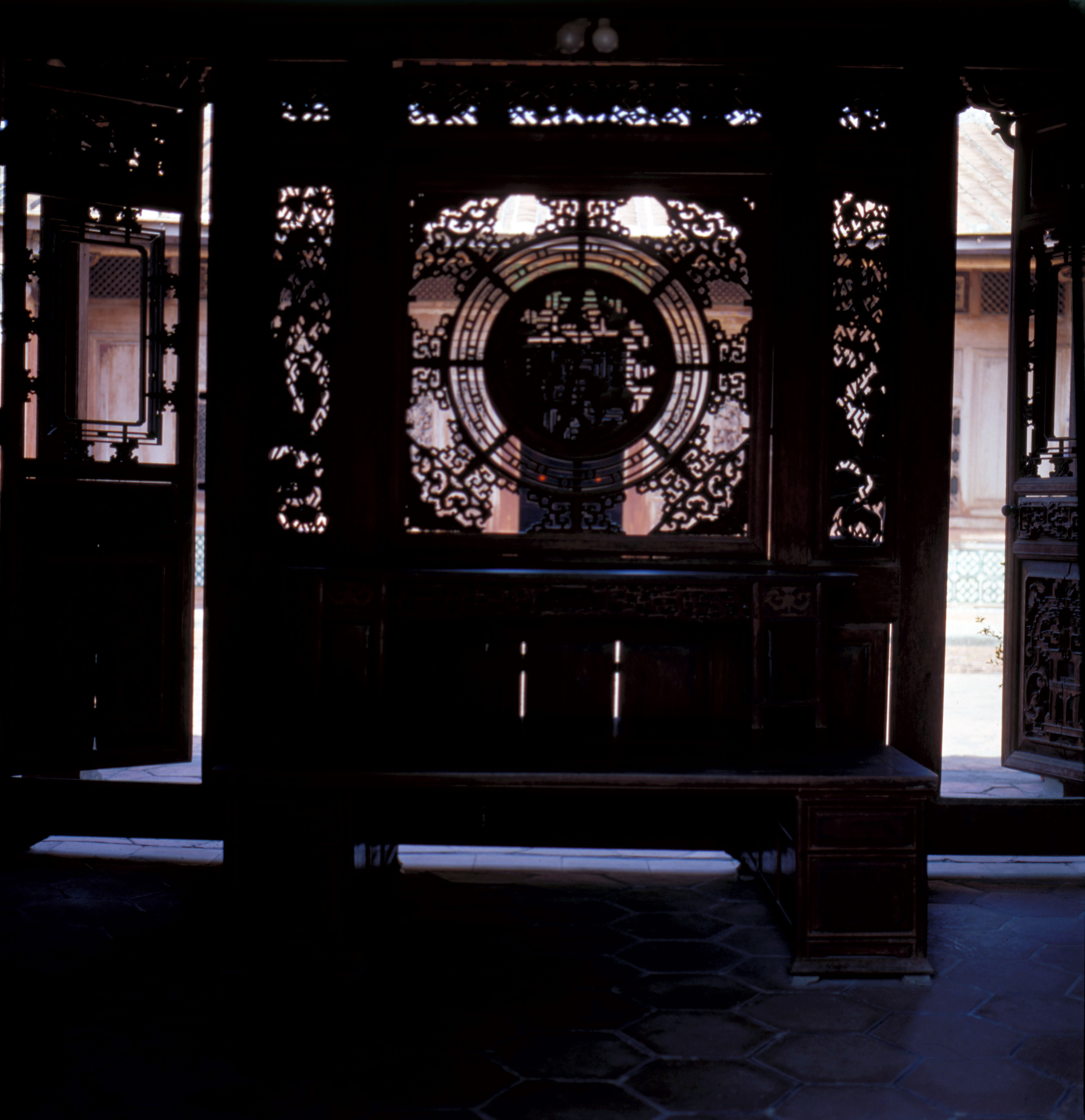 The elaborately elegant wood carving of the widely renowned Tunpen Hall on Chushan (Bamboo Mountain).