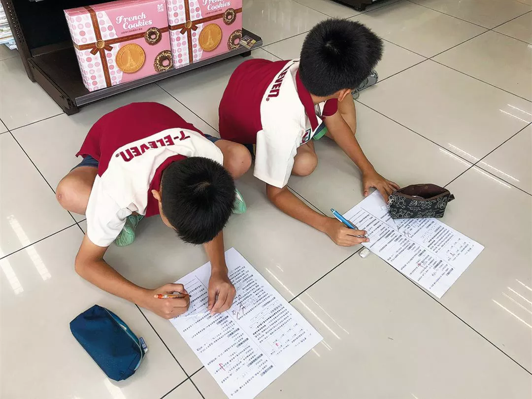 With children playing the role of store clerks, tutors at Zheng-Min Elementary lead them through a series of real-world challenges to test their ability to make two-step calculations. (courtesy of Zheng-Min Elementary School)