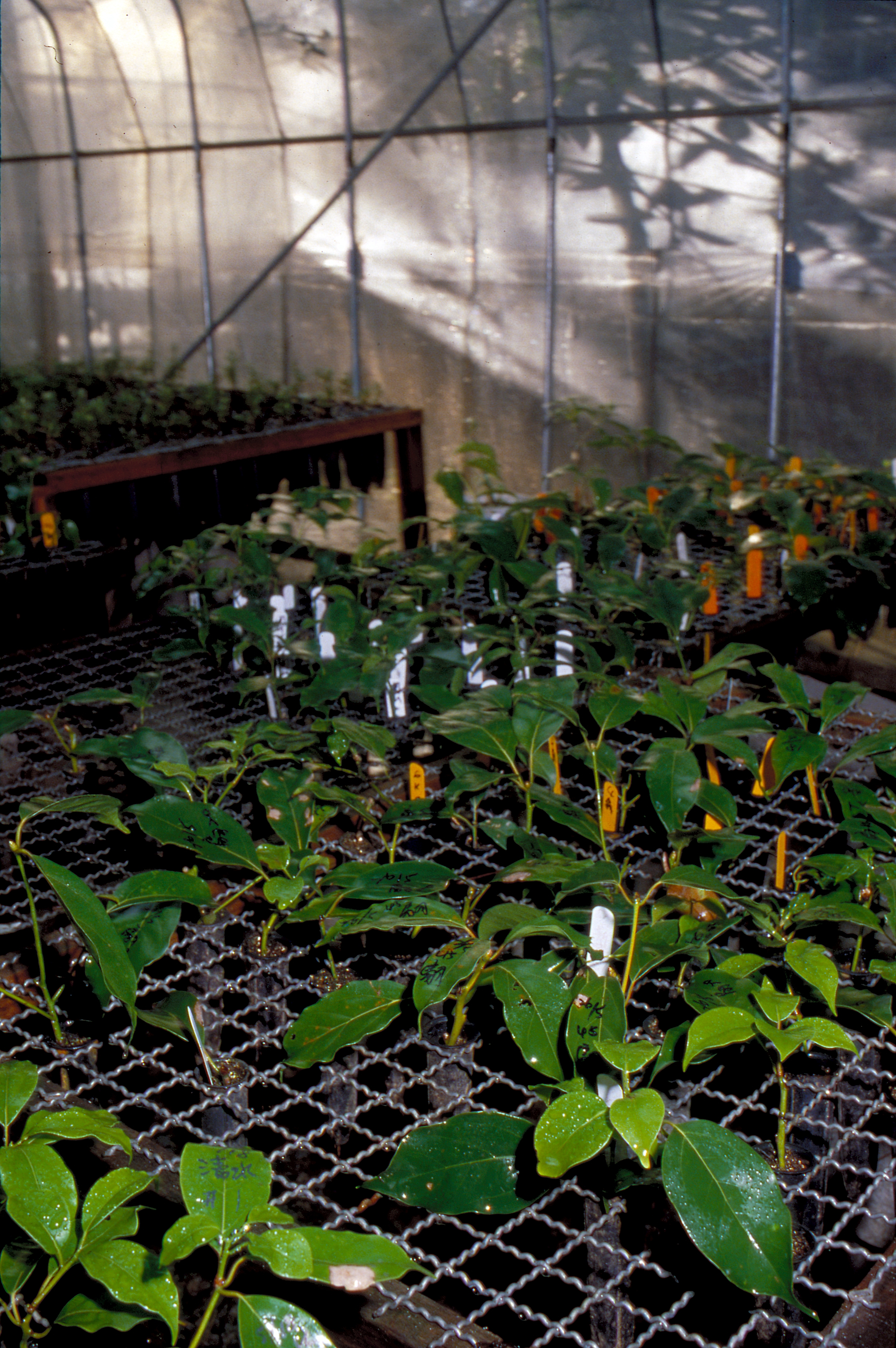 The shoots of stout camphor cultivated in the greenhouse by the Forestry Institute look green and healthy.