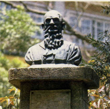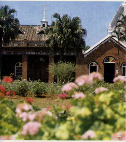 The first foreign missionary to arrive in the Tamsui area was the Rev. George Mackay, who took a Chinese wife, and spent his whole life working with the Chinese in Taiwan. When he first arrived in Tamsui in 1872, he heard a voice telling him to stay. The next day he was out spreading the Gospel and helping to establish medical services in northern Taiwan. Eight years later he went to his native Canada and persuaded Ontario's Oxford College to donate enough money to start a college also named Oxford College, which was opened in Tamsui in 1882. When he died in 1900, he was buried in the Tamkang Middle School, which he also founded. The Oxford College, built in red brick and having stained glass windows and a roof with many pagodas, is now part of the Tamsui Junior College of Industrial and Commercial Management.