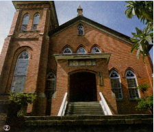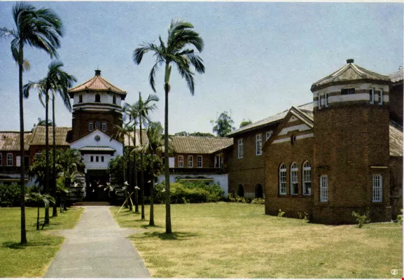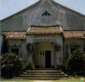 Among the interesting old buildings in Tamsui is the 100- year-old Chinese style gymnasium in the grounds of the Tamkang Middle school, which is spacious enough to accommodate a basketball and several badminton courts. In the town itself, many of the old houses are built on hills with curved and narrow stepped streets. A strange feature of these houses is that the front portions are one-story, while the rear parts are two or three stories. This is because they were formerly located in the town's business district, and the front portions were used as shops. But since the business district moved nearer the waterfront, the lower front rooms are now simply part of the residential quarters. The nearby St. Benedict Convent includes three modern and dignified buildings, a chapel, an activities center and a nuns' dormitory. The grave of the convent's founder can be found in the grounds.