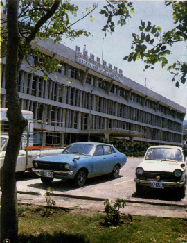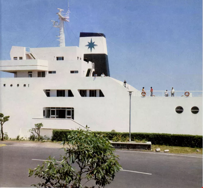 The campus of the Tamkang College of Arts and Sciences in Tamsui is wide and spacious, with many modern buildings, each with its own characteristics. The Merchant Shipping Hall (above right), for instance, is shaped like an ocean-going liner, and with its authentic shipping materials inside, makes an ideal learning environment. Standing outside a Chinese palace-style building are a line of Chinese lanterns(right) and neatly cut pines and cypress trees, which combine to give the appearance of palace. Mt. Kuanying, rising more than 2,000 feet across the Tamsui River is usually covered in mist in the morning, but is clear by noon. As the shadow of the mountain falls on the river in the evening, the whole scene looks like a Chinese painting.