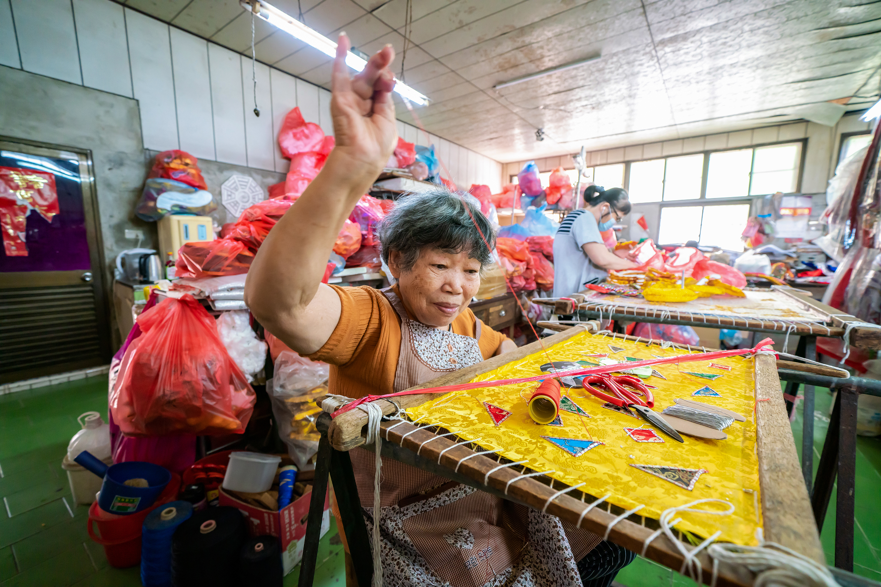 After Zhang had spent several years as an apprentice, the owner of the business moved away and closed down the shop. Customers who liked Zhang’s skillful work encouraged her to go into business for herself. They introduced new customers to her, and as her reputation spread her business flourished. In 1989 Zhang moved her workshop to a corrugated steel structure in the suburbs of Chiayi City, where it remains to this day.