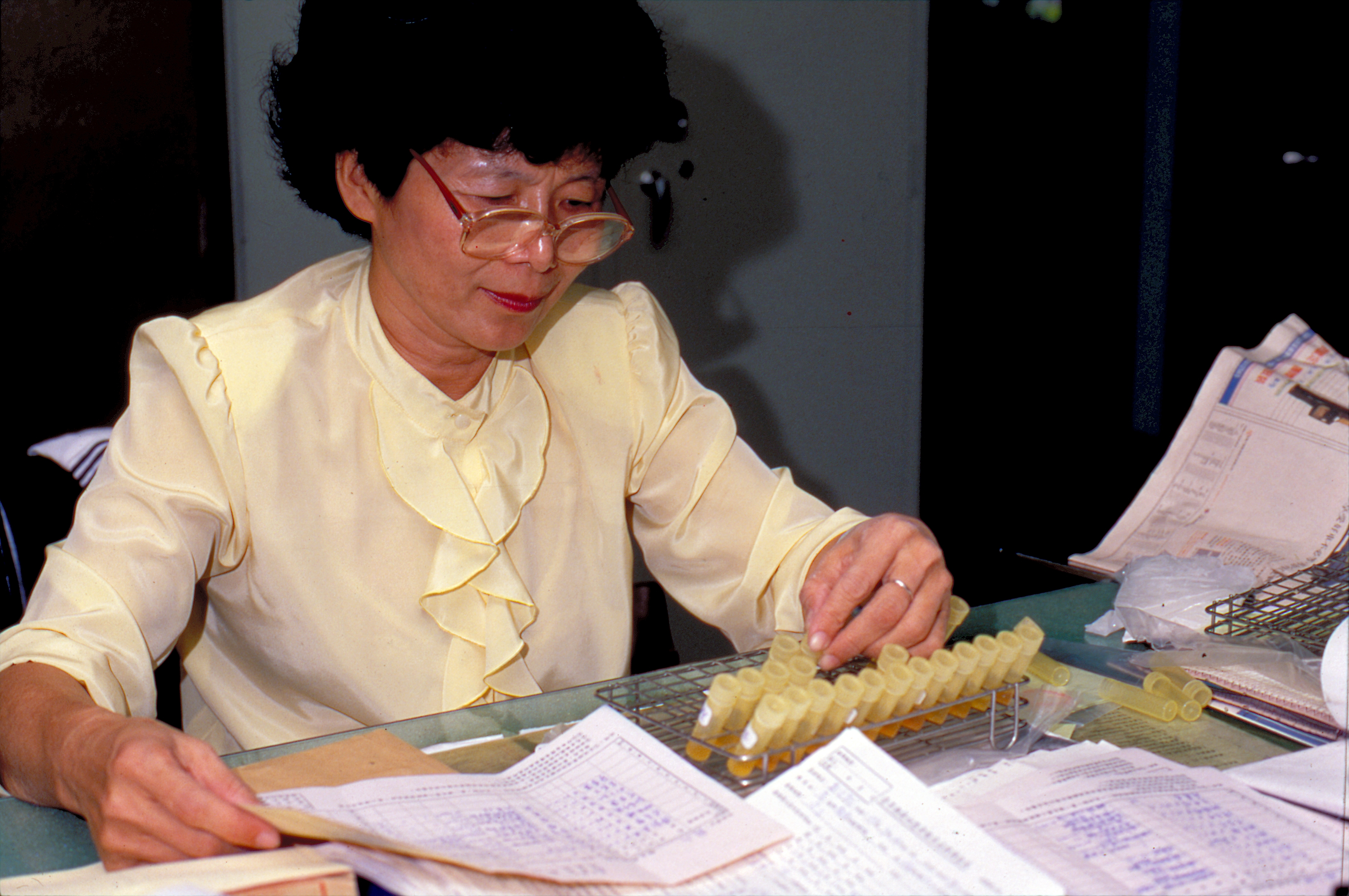 Workers at the Kaohsiung County Department of Environmental Sanitation are busy putting together test samples to send to the Institute of Preventive Medicine of the Department of Health of the Executive Yuan.