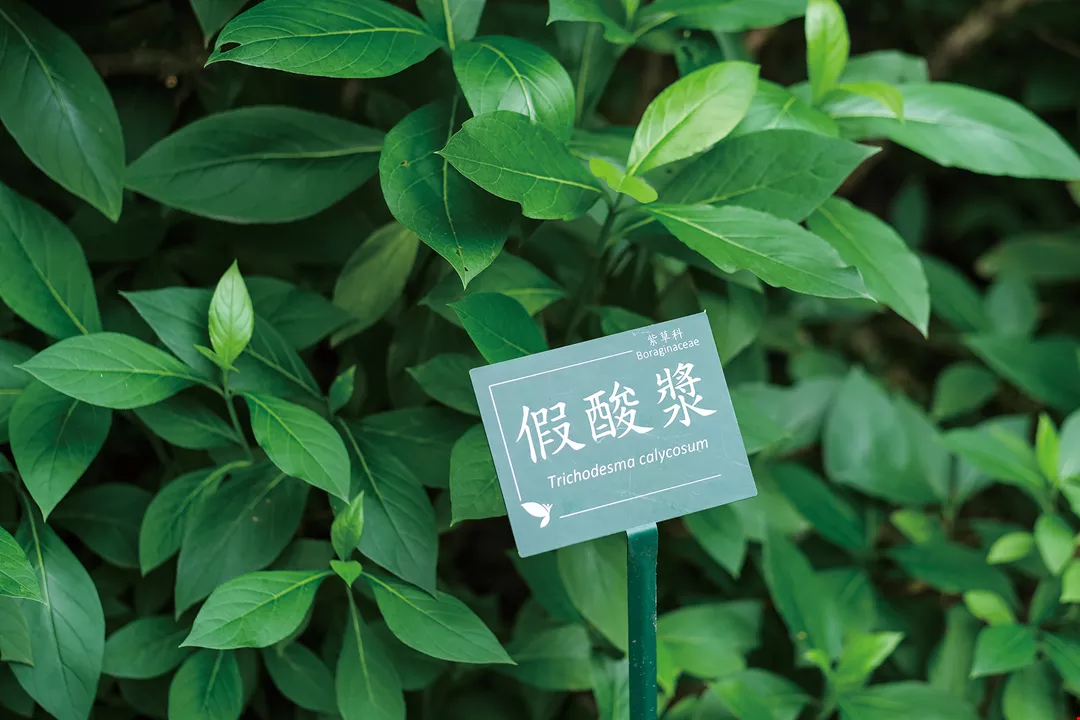 Entering the garden from Heping West Road in Taipei’s Zhongzheng District, we turn left and find ourselves in the Ethno-Plants Garden. Trichodesma calycosum, a flowering shrub in the borage family, greets us. Indigenous people use its leaves to wrap millet dumplings such as cinavu and abai. “This is actually one of the few vegetables native to Taiwan,” says ethnobotanist Tung Gene-sheng.