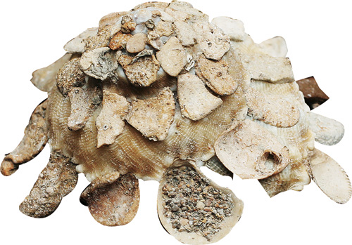 Carrier shells (Xenophoridae), which live on the ocean floor at a depth of 200 meters, are masters of their environment. To camouflage themselves, carrier shells make use of what is nearby, decorating themselves with fragments of coral and other detritus. The Nanfang-ao Shell Exhibition has a carrier shell that is festooned with broken glass. It bears witness to the pollution of the deep seas.