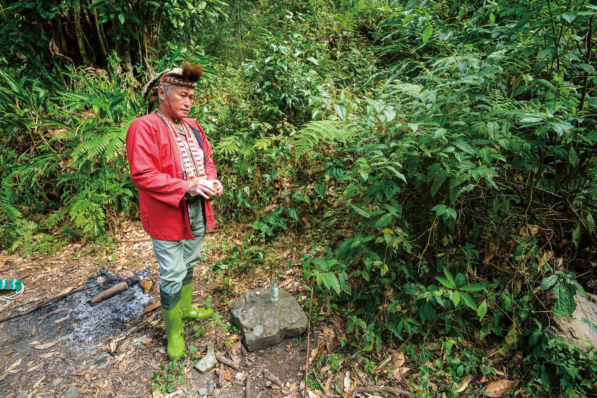 Before entering the mountain forest for our tour, tribal elder Mo’o ’e ’Akuyaeana first makes an offering of rice wine and holds a simple prayer ritual to the spirits of the mountain. He likens this to the Han Chinese worship of the Earth God.