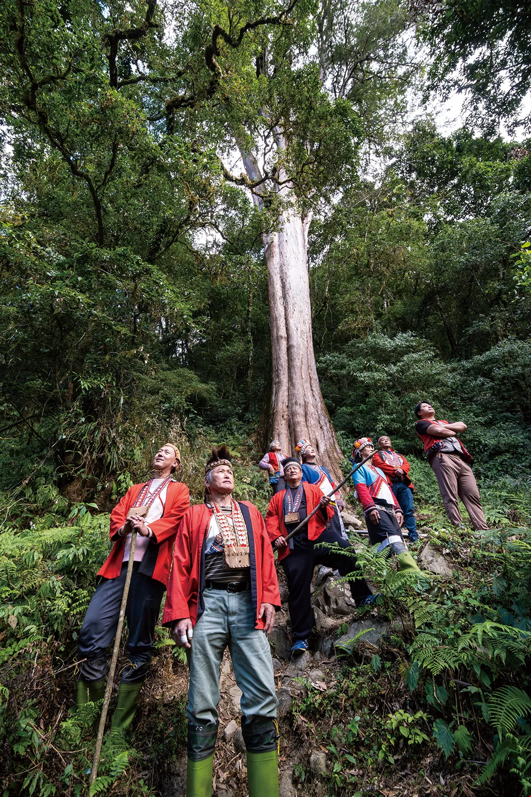 Starting out from the Tsou Indigenous community of Tfuya, visitors ride in a small truck along a narrow mountain road only one vehicle wide. After about a half hour of a bumpy, roller-coaster drive, we arrive at a grove of giant trees known by locals as Noyoca. This traditional hunting ground of the Tsou Indigenous people, located near the southern trailhead of the Tefuye (Tfuya) Historic Trail, is a swathe of primeval forest of Taiwan red and yellow cypress trees within which one can still see 30 giant trees numbered by the forestry authorities.