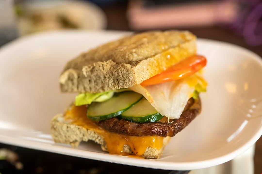 Dai’s stinky tofu burger has all kinds of vegetables inside, topped with a specially made condiment. Looks, aroma, taste… it has everything.