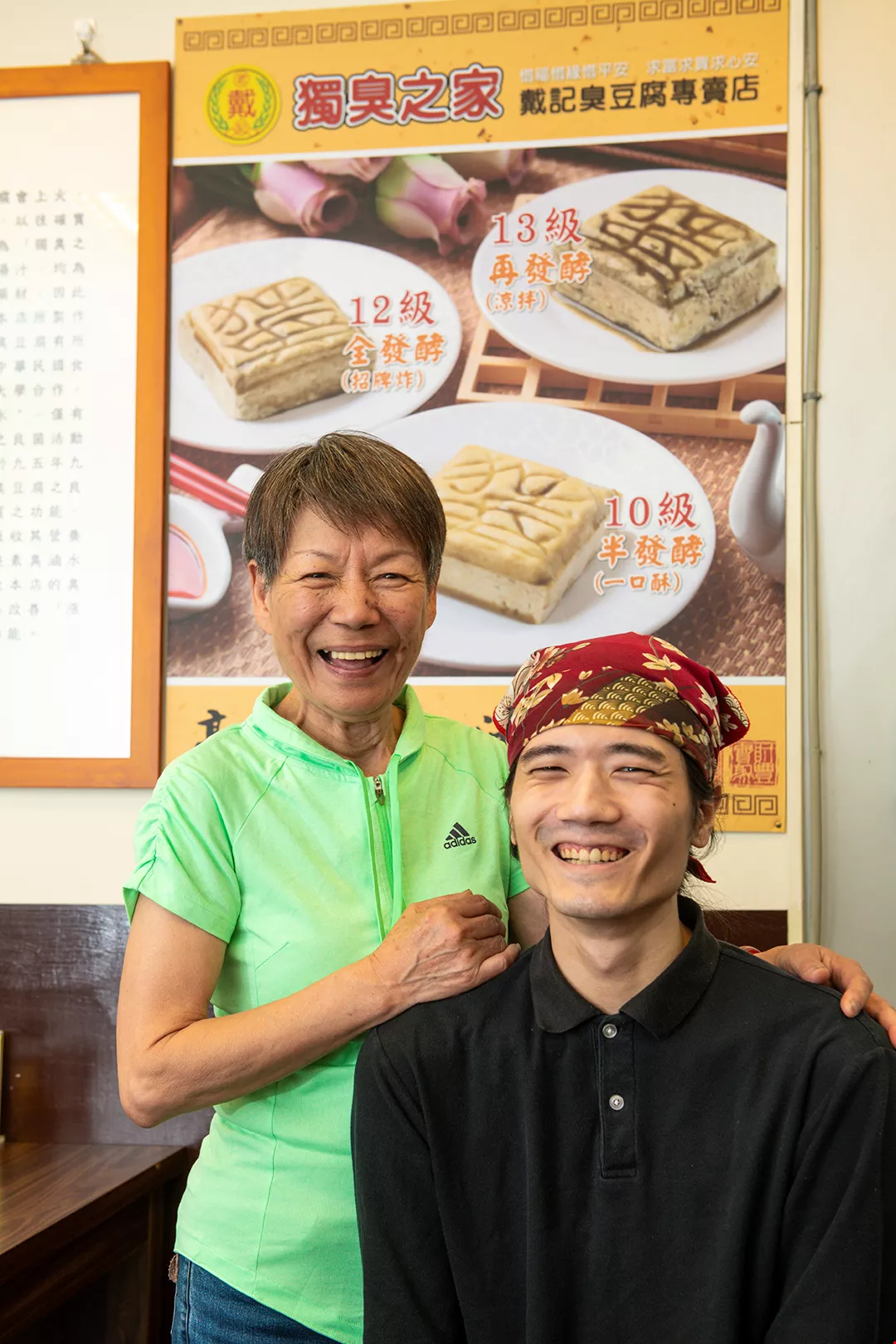 Jackie Wu (left) has been teaching her chou doufu making techniques to her grandson Zhang Zhengliang (right), so that the smell will continue to waft from Dai’s House of Stinky Tofu into the future.