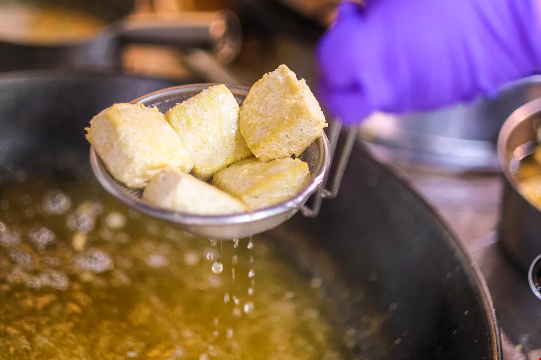 Qiaotou’s Yang Debin believes the key to making delicious stinky tofu lies in the chef’s deep-frying skills.