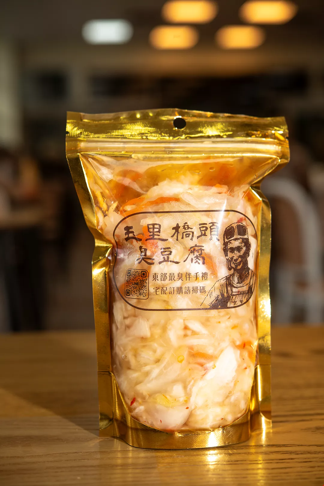 As Yang’s children have returned home to help out, Qiaotou is being handed over to the third generation, and has expanded beyond Yuli into locations including Hualien City and Yilan’s Jiaoxi Township. His elder daughter, Yang Yining, has gone a step further and developed cold stinky tofu dishes. She has adjusted the frying time of the tofu and come up with three versions of cold chou doufu: plain, garlic, and lemon-scented sour and spicy. Stinky tofu is steeped in the relevant sauce until it fully absorbs it, and the cool, refreshing taste has proven to be quite popular.