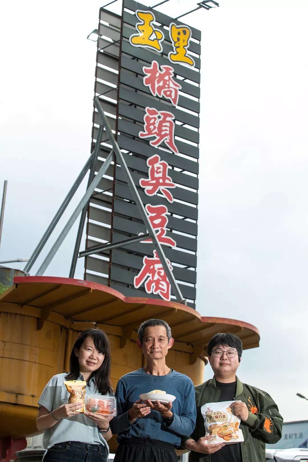 Yang Debin (center) has worked with his daughter Yang Yining (left) and his son Yang Zhe (right) to expand Qiaotou Stinky Tofu into locations beyond Yuli Township while also developing new possibilities for chou doufu.