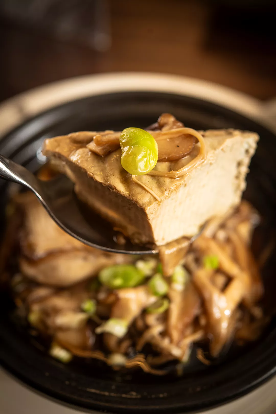 Stinky tofu can be prepared in many ways, including steaming, boiling, stir-frying, deep-frying, and roasting, to make a wide range of delicious dishes. The photo shows steamed chou doufu from Dai’s House of Stinky Tofu.