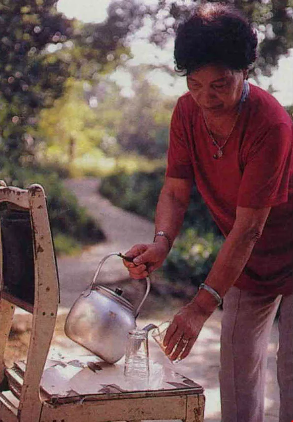 At that time, besides tea houses, there were also numerous tea stands, located under trees in parks or at the entrances to temples. They were surrounded by an air of leisure and fun rare in pre-industrial Taiwan. Hsieh Chih-chang recalls that on Yangming mountain near the hot springs there used to be a stand that sold tea and even threw in a bamboo recliner for free. At that time, she was a university student, and she often went, book in hand, to while away the afternoon. Cool winds blew through the trees, and birds sang and insects chirped. She can still remember the relaxed atmosphere with elderly people, baby carriages, children, and entire families all enjoying themselves.