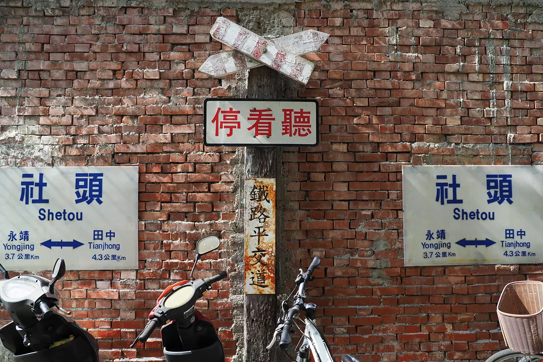 Take the train to Shetou in Changhua County, exit the station and walk straight ahead. After about 500 meters, you will come to a railroad crossing signal. Beside it is a signboard like the ones posted at railroad stations, bearing the name “Fu Jin” at top, and below it the names of neighboring stops “Happiness” (Xingfu) and “Safety” (Ping’an).