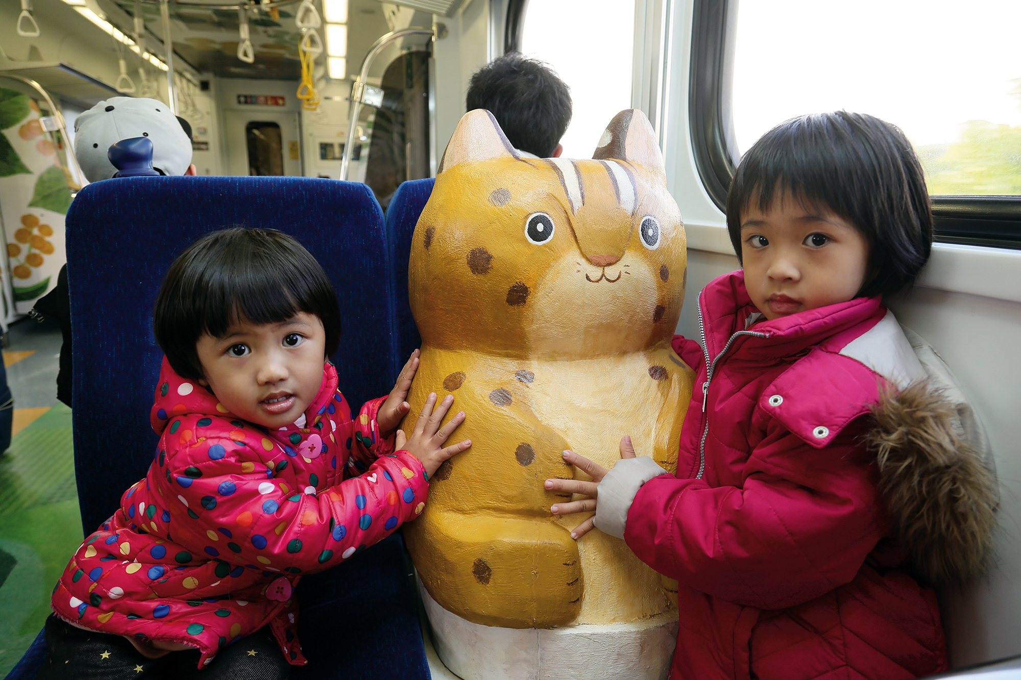 If you observe carefully, on a seat inside the carriage you will find a sculpted leopard cat, made from Taiwanese materials. When you look up, you may discover a wooden carving of a Taiwan barbet in flight.