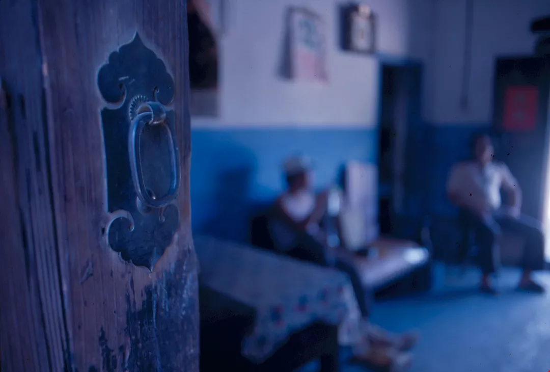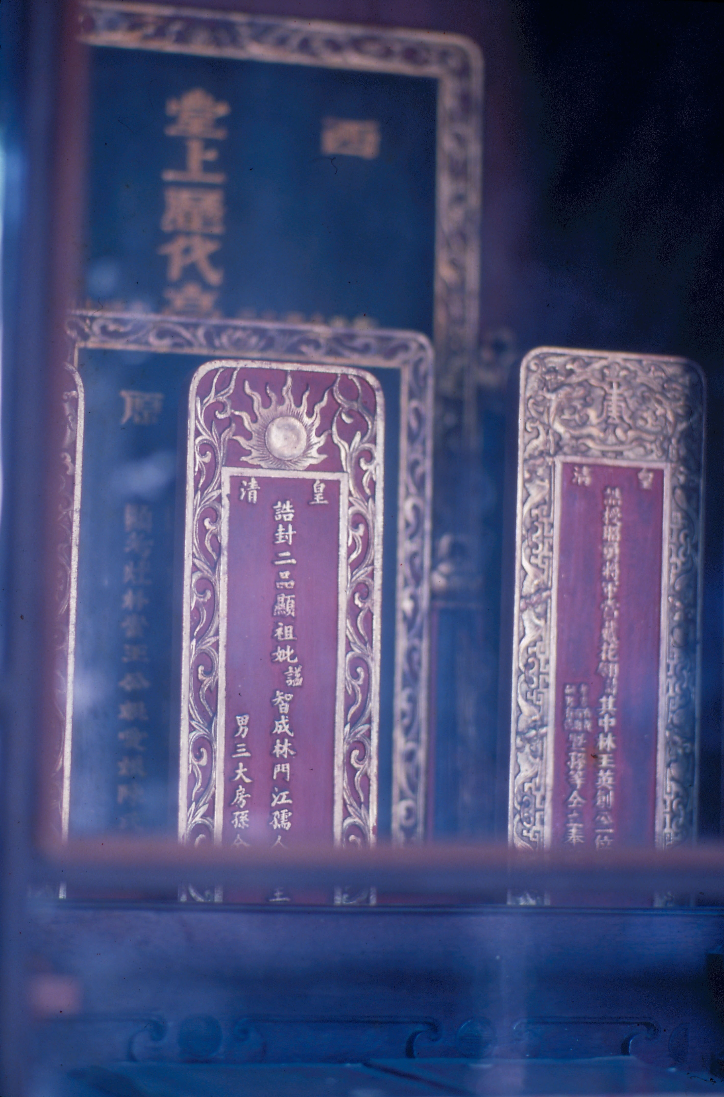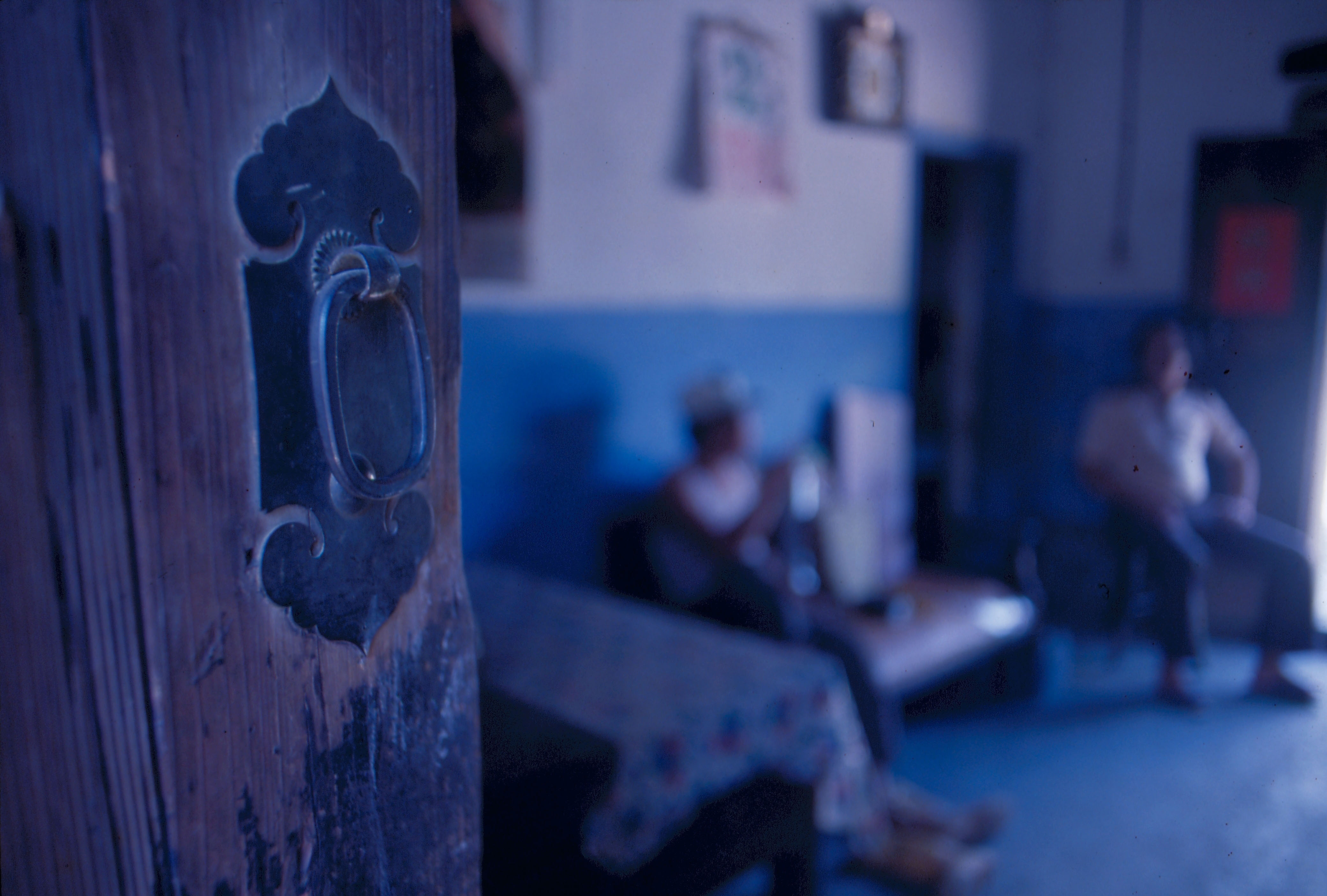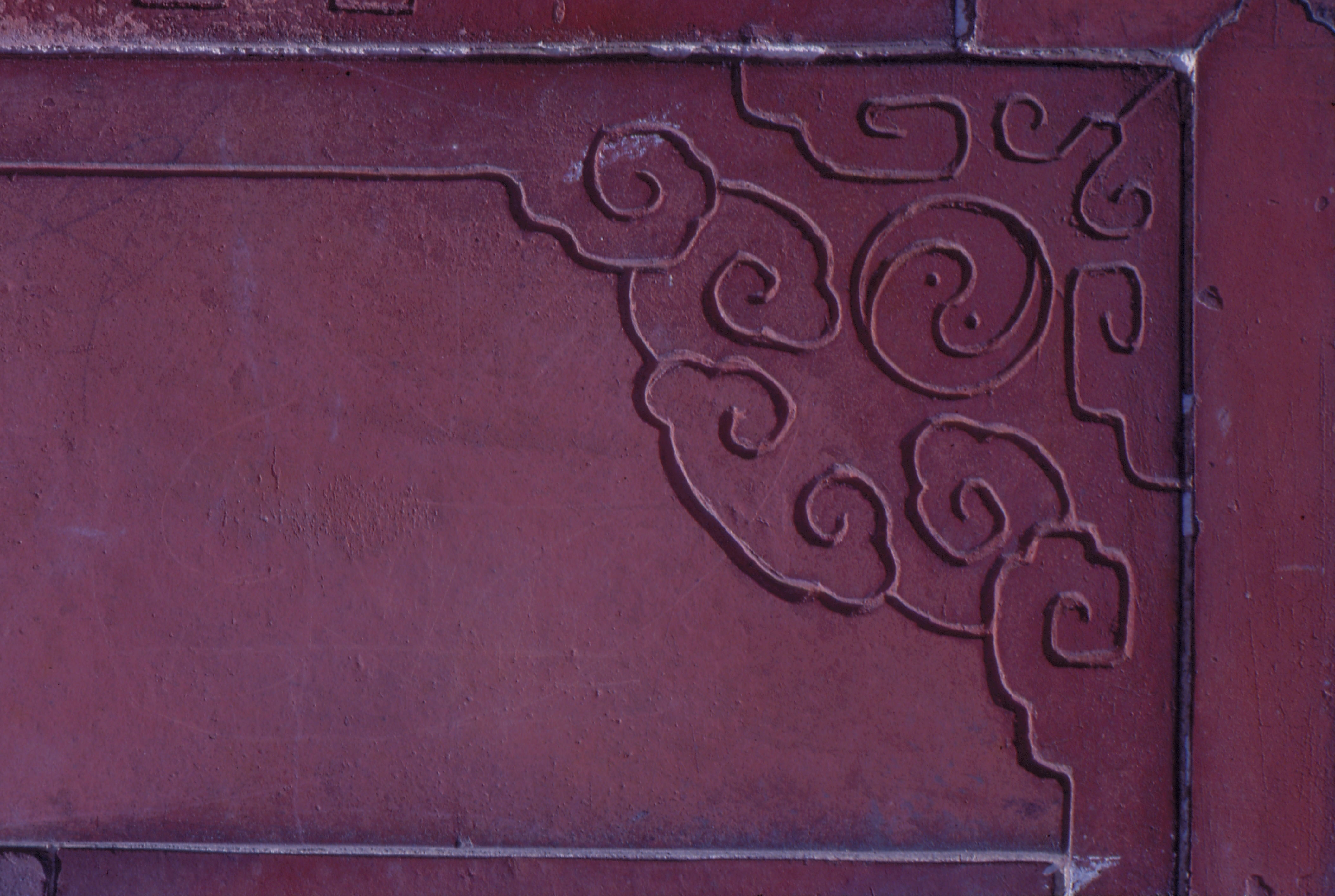 1. Indigo porcelain calligraphy on a doorway beam. Note the fancy Chiao Chih ceramics.